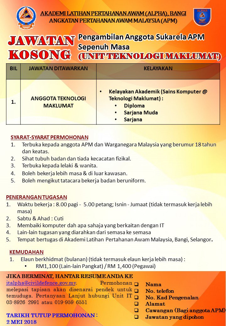 Jawatan Kosong Terkini Akademi Latihan Pertahanan Awam Malaysia Alpha Jawatan Kosong Terkini