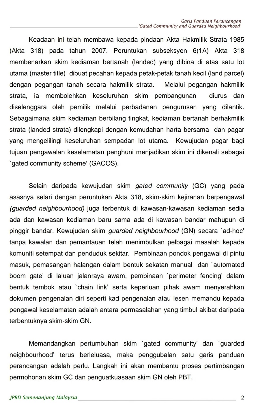 Penduduk Nafiri Nahara Nobat Geta Cogan Saron Garis Panduan Gated Community Guarded Neighborhood Jpbd Kpkt