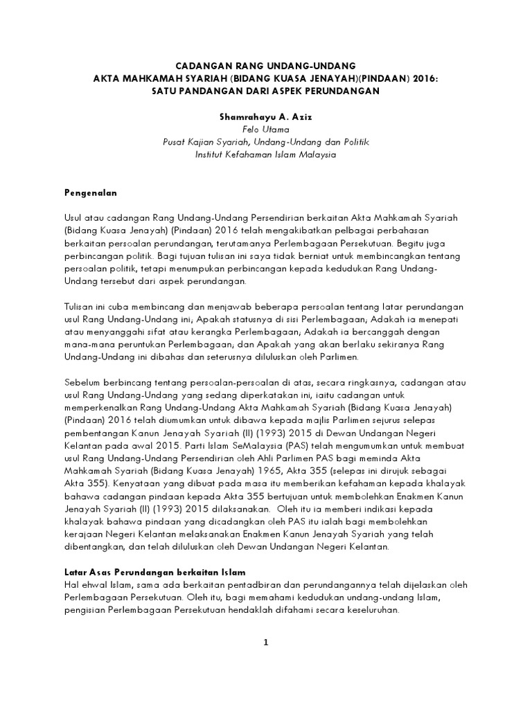 Pdf Cadangan Rang Undang Undang Akta Mahkamah Syariah Bidang Kuasa Jenayah Pindaan 2016 Satu Pandangan Dari Aspek Perundangan Faris Zurajali Academia Edu
