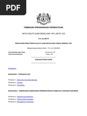 Peraturan Kualiti Alam Sekeliling Udara Bersih 1978 P U A 280 78 Pdf