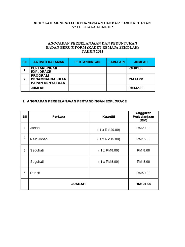 Bajet Sekolah Menengah Kebangsaan Bandar Tasik Selatan