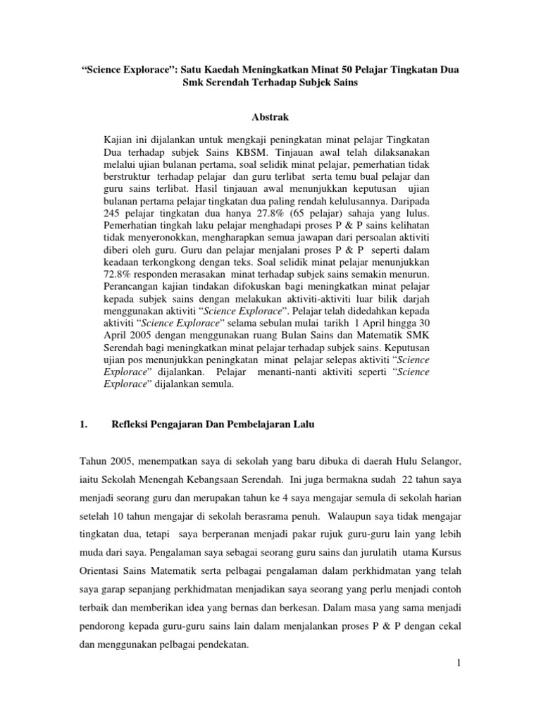 Pdf Science Explorace Satu Kaedah Meningkatkan Minat 50 Pelajar Tingkatan Dua Smk Serendah Terhadap Subjek Sains Madznah Bachok Academia Edu