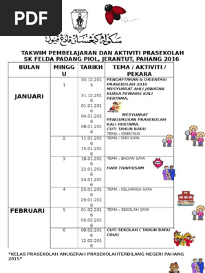 Takwim Pembelajaran Dan Aktiviti Prasekolah Mawar