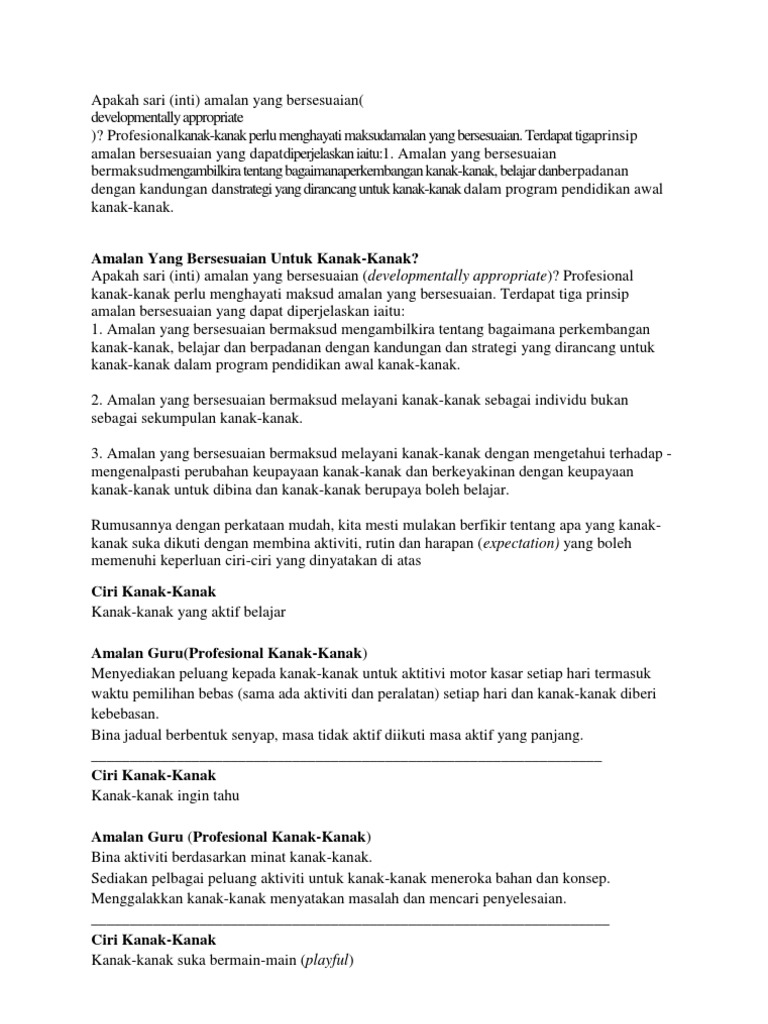 Amalan Bersesuaian Dengan Perkembangan Kanak Kanak