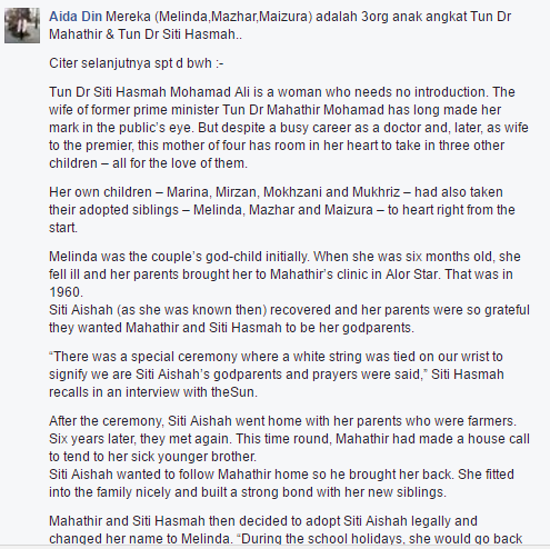 Sedaka Sejahtera Terlalu Panas Anak Angkat Tun Mahathir Kata Pm Najib Isteri Murtad Di Laman Facebook Miliknya Amat Keterlaluan