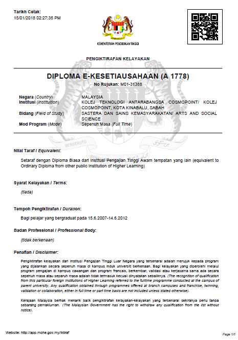 Diploma E Kesetiausahaan Diploma In E Secretaryship A11102 Cosmopoint College Sabah Permohonan On Line
