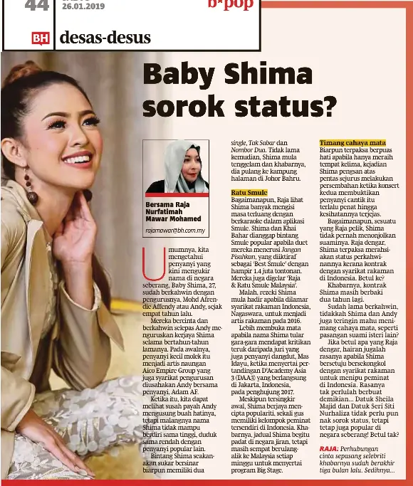Pressreader Berita Harian 2019 01 26 Baby Shima Sorok Status