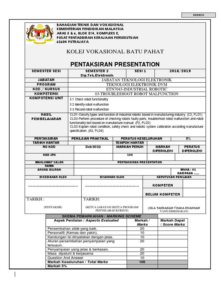 Pentaksiran Presentation Kolej Vokasional Batu Pahat