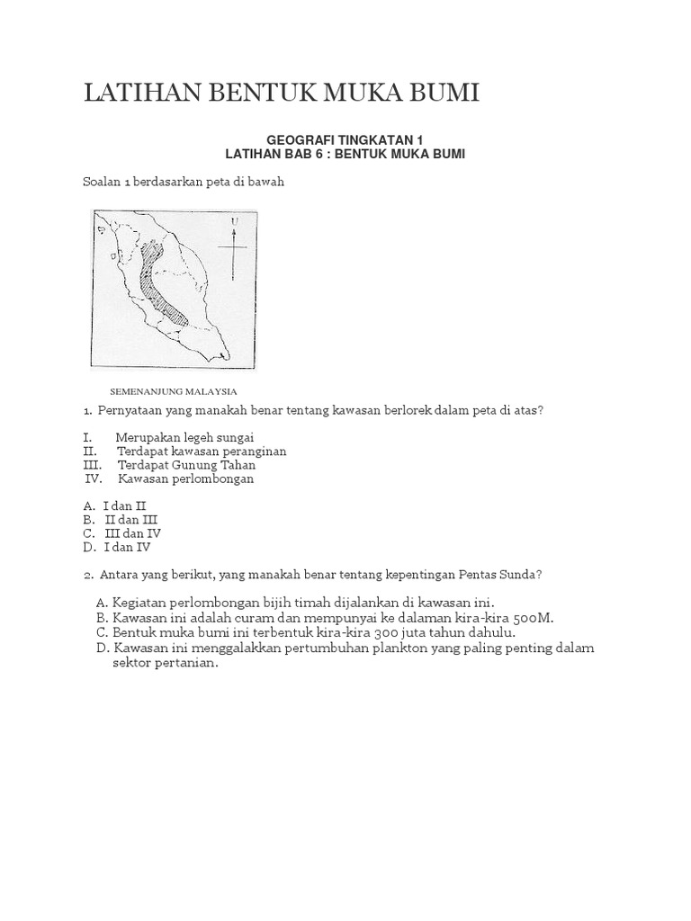 Geografi Tingkatan 1 6 1 Bentuk Muka Bumi Di Malaysia Latihan 1 Youtube