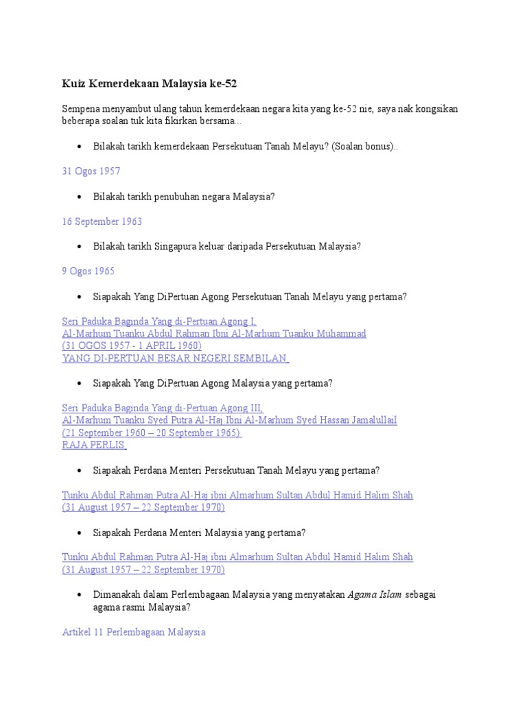 Kuiz Kemerdekaan Malaysia Ke Docx