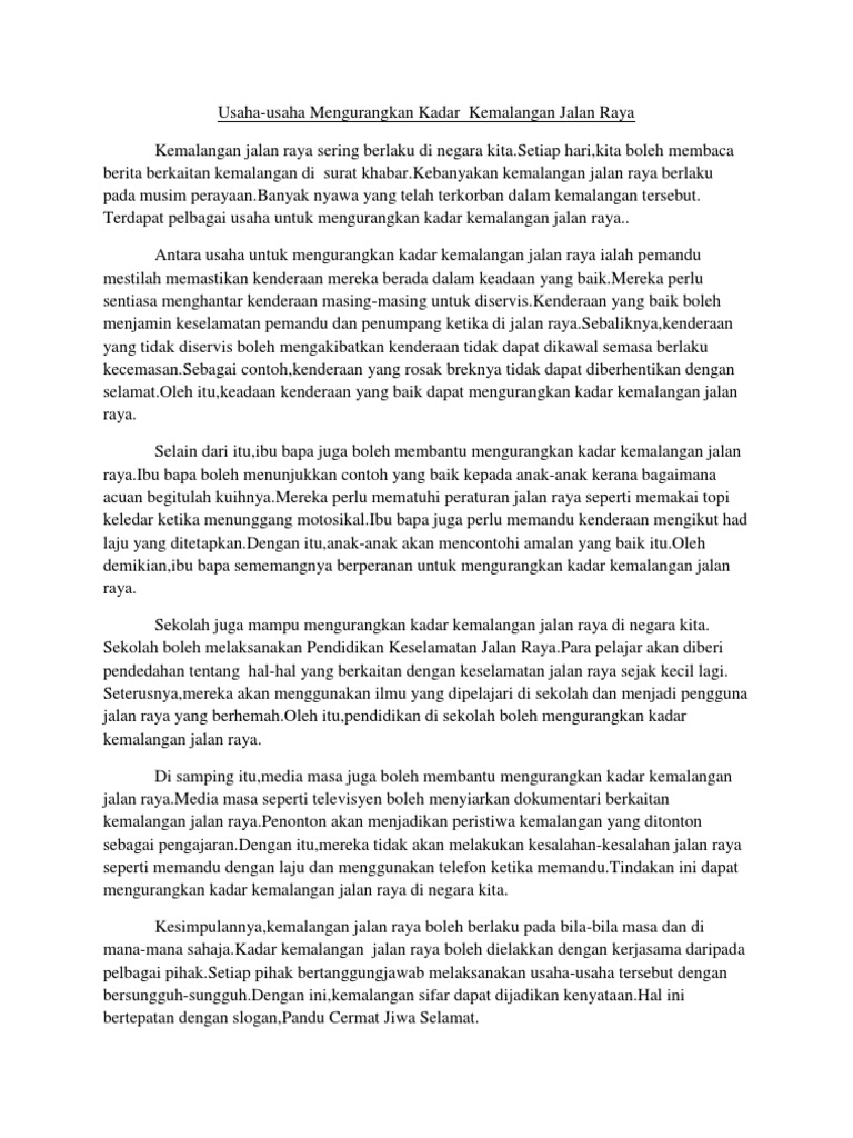 Contoh Soalan Karangan Kemalangan Jalan Raya Lamaran O