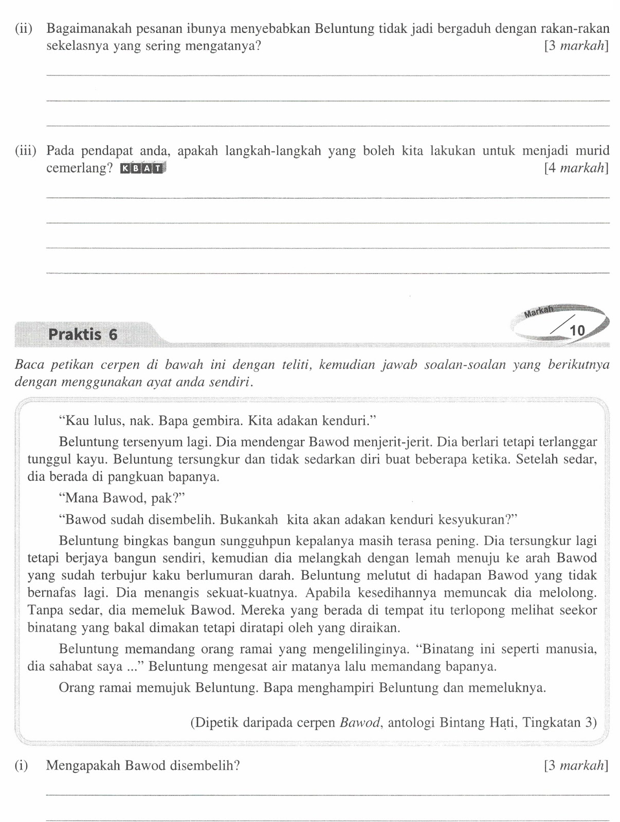 Bahasa Melayu Tingkatan 3 Cerpen Bawod Lessons Tes Teach