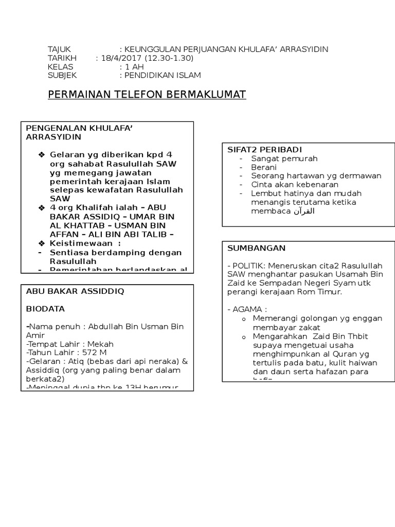 Pendidikan Islam Tingkatan 1 Pelajaran 26 Keunggulan Perjuangan Khulafa Ar Rasyidin