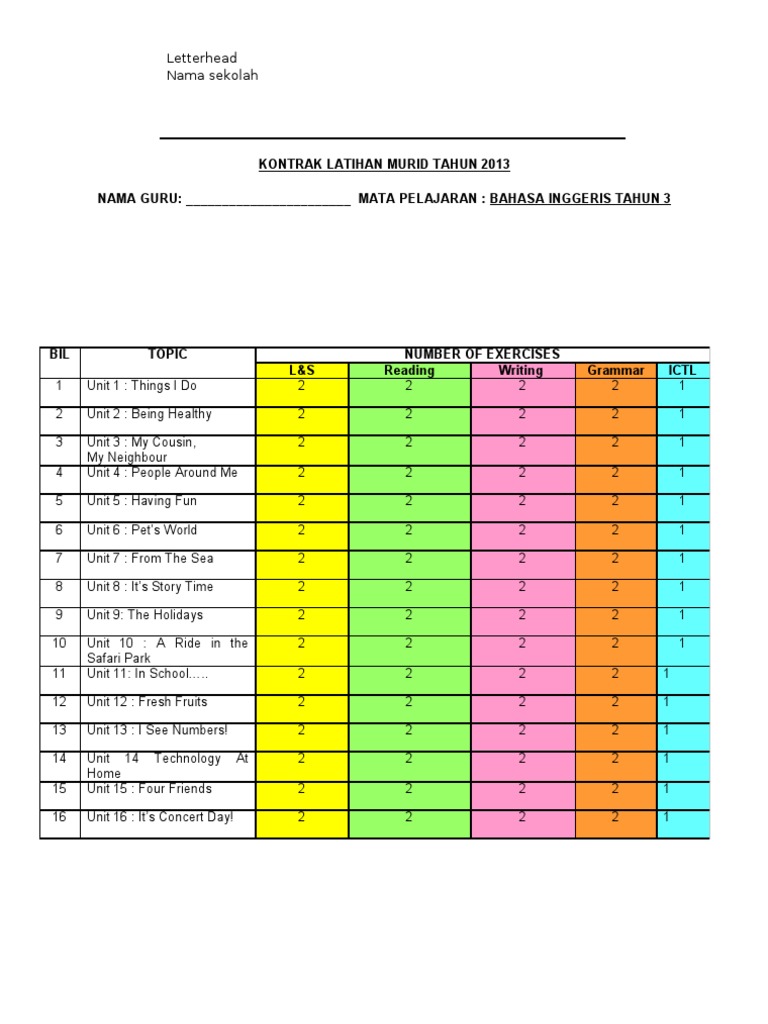 Kontrak Latihan Bahasa Inggeris Tahun 3 Kssr