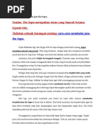 Si anak juga tidak tahu cara untuk membalas jasa ibu bapa mereka lagi. Sesudah lahir kita dijaga dengan penuh kasih sayang bagai menatang minyak yang penuh. Cara membalas jasa ibu bapa juga adalah dengan mengajarkan ilmu agama buat mereka. Ibu bapa akan lebih gembira sekiranya kita menjadi anak yang rajin atau ringan tulang.