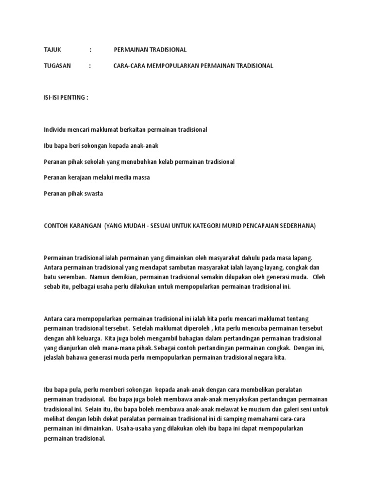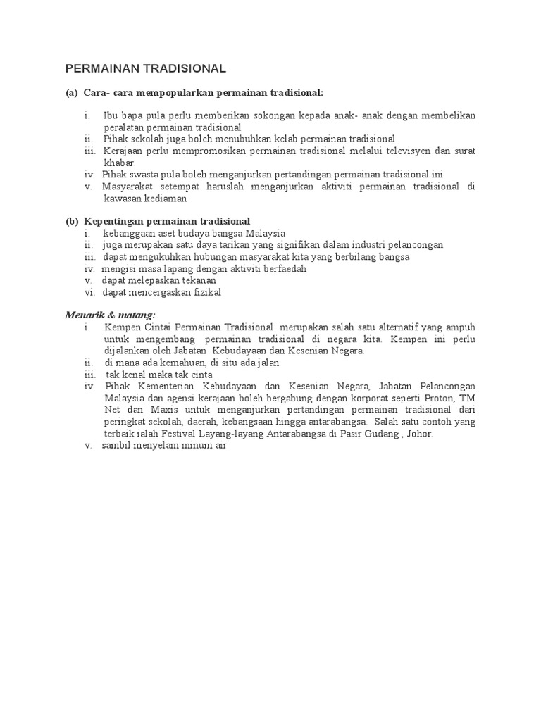 Kepentingan Permainan Tradisional Kepentingan Permainan Tradisional Permainan Tradisional Merupakan Warisan Budaya Masyarakat Melayu Yang Tidak Course Hero