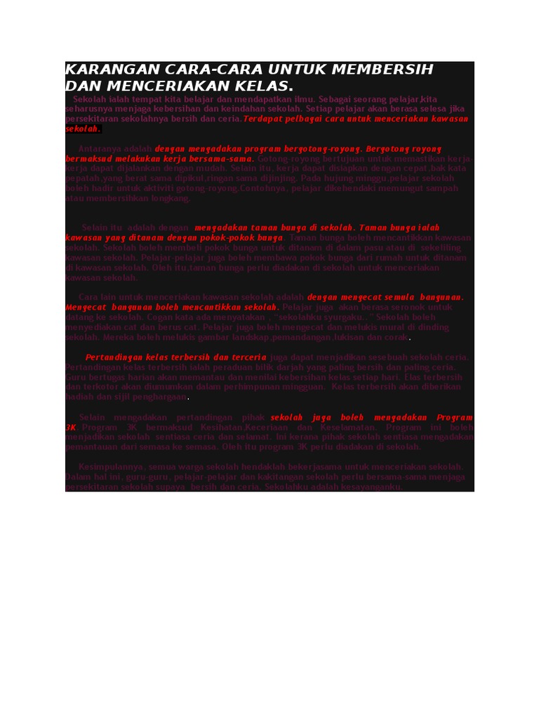 Ciri ciri pelajar yang cemerlang. Karangan bahagian a cara cara menjaga kebersihan sekolah. Hal ini menjamin keluarga yang lebih ceria dan bahagia. Yakinilah akan hakikat kalau kita jaga kebersihan hati dan jiwa kita jua turut bersih damai dan tenang.