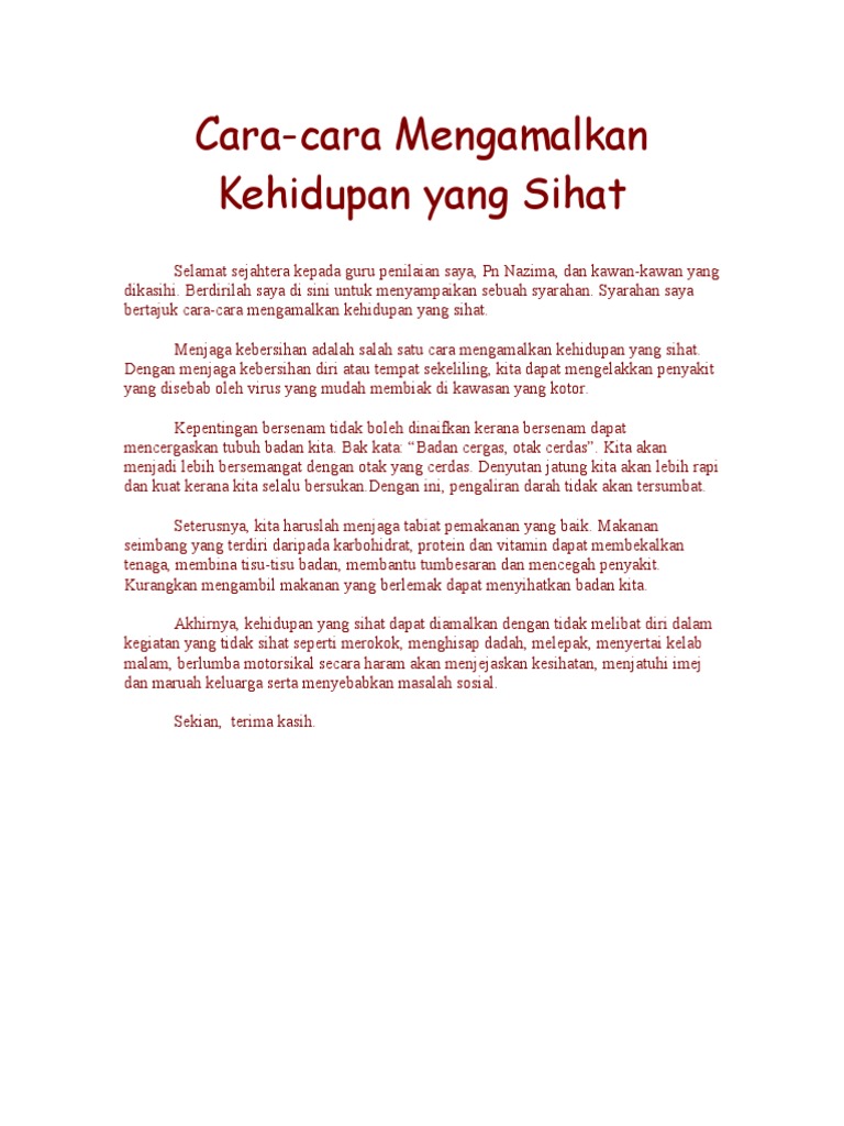Kesihatan Diri Contoh Karangan Menjaga Kebersihan Diri