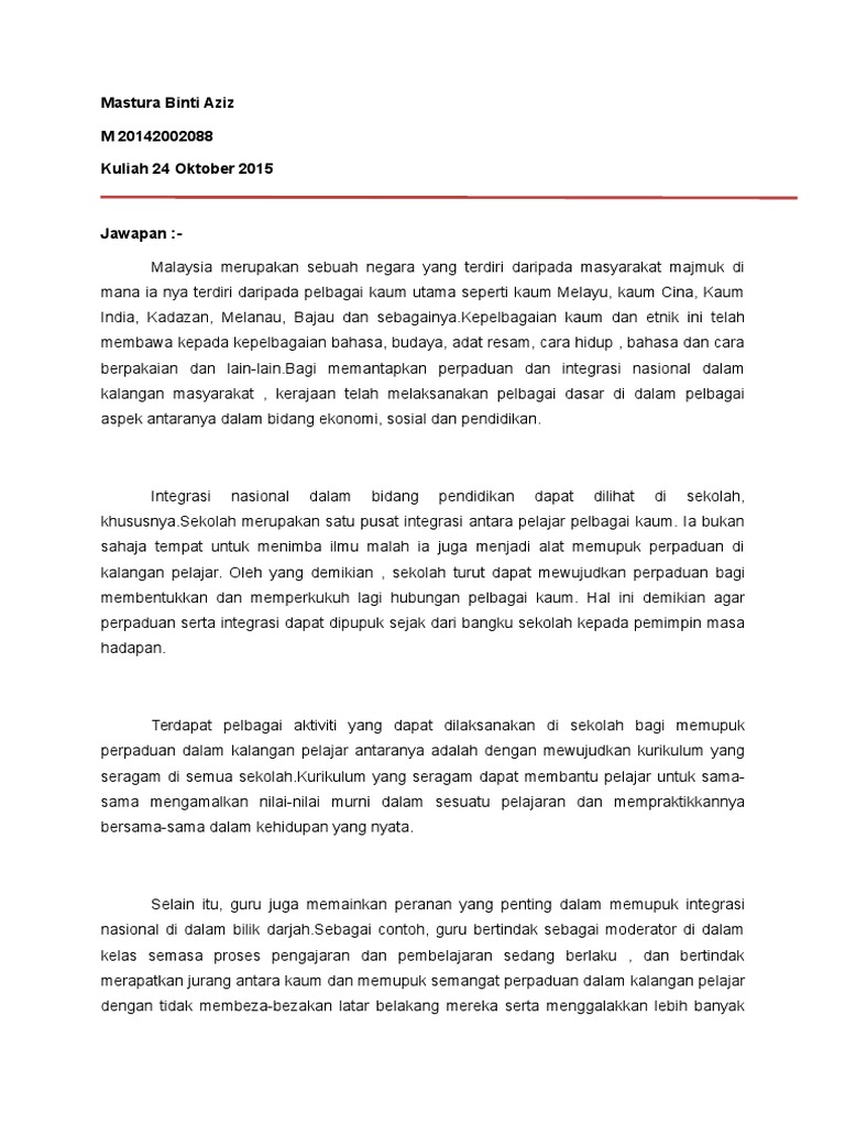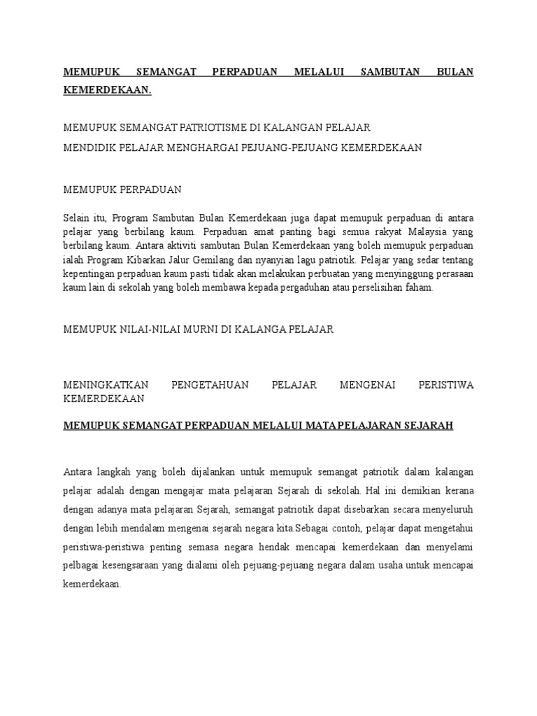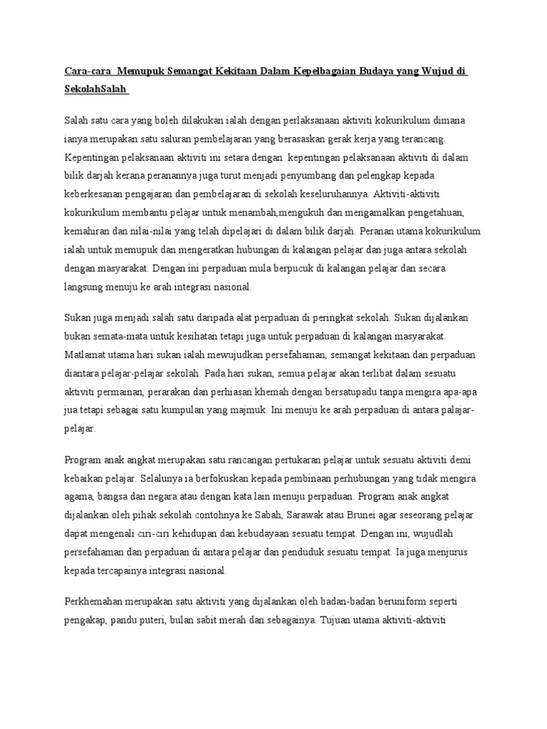 Karangan Cara Cara Memupuk Semangat Perpaduan Dalam Kalangan Pelajar Pdf Document