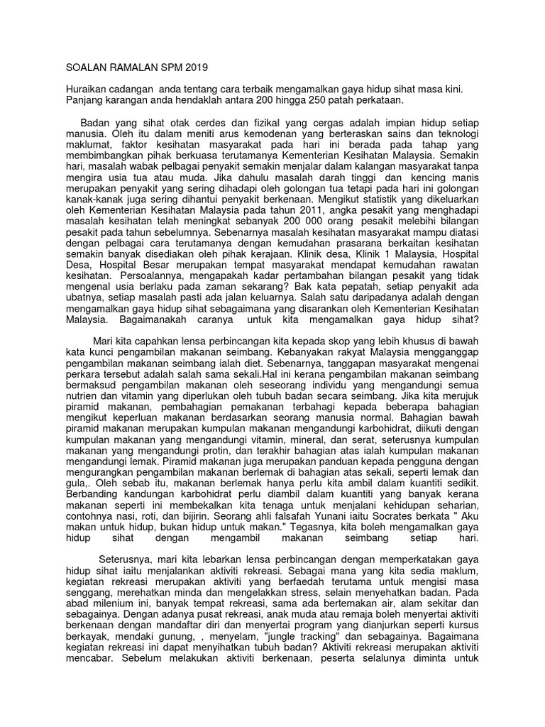 Fokus Karangan Bahan Rangsangan Spm 2010 Amalan Gaya Hidup Sihat