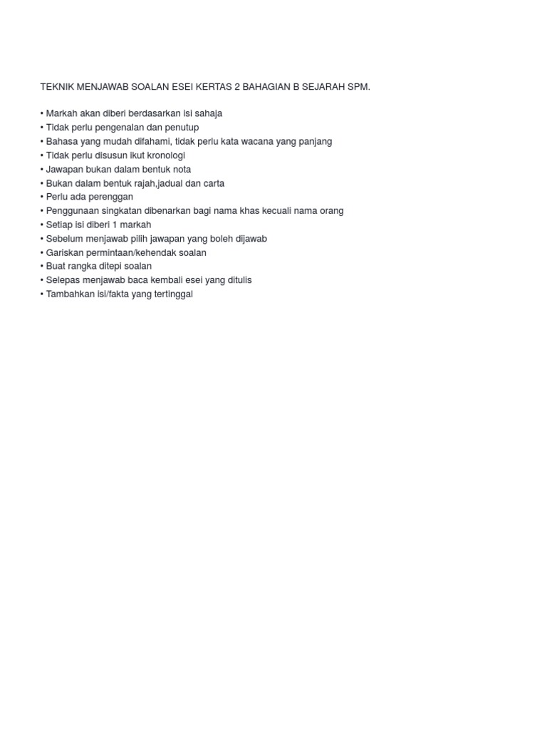 Teknik Menjawab Soalan Esei Kertas 2 Bahagian B Sejarah Spm Docx