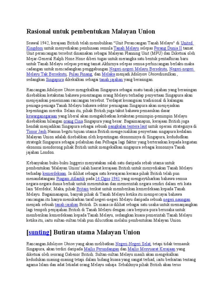 Doc Bab 2 Malayan Union Dan Persekutuan Tanah Melayu Nazhif Wan Yusoff Academia Edu