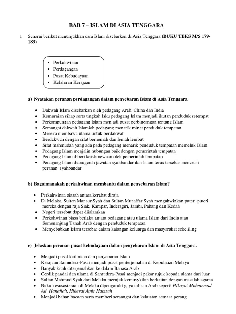 Sejarah Tingkatan 4 Bab 7 Islam Di Asia Tenggara