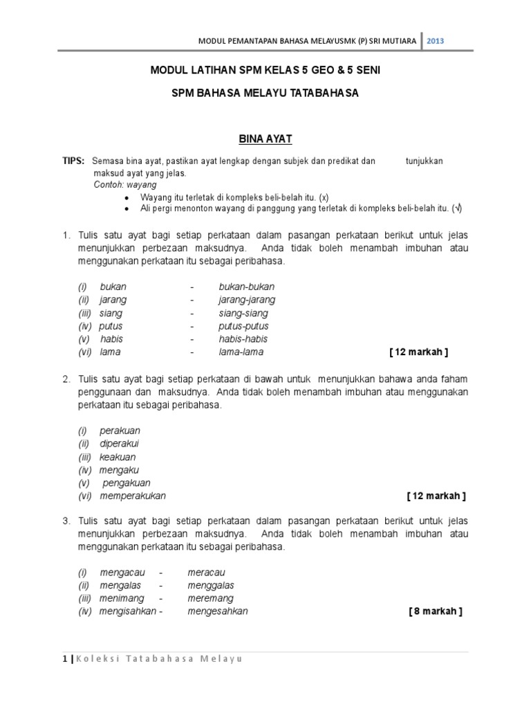 Kertas 2 Soalan Skema Tatabahasa Percubaan Spm 2019 Se Malaysia
