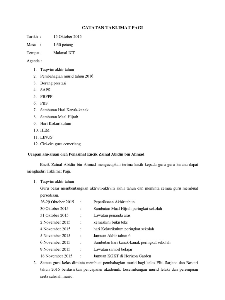 Catatan Taklimat Pagi Docx