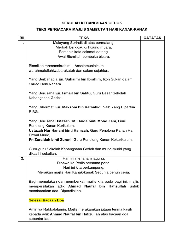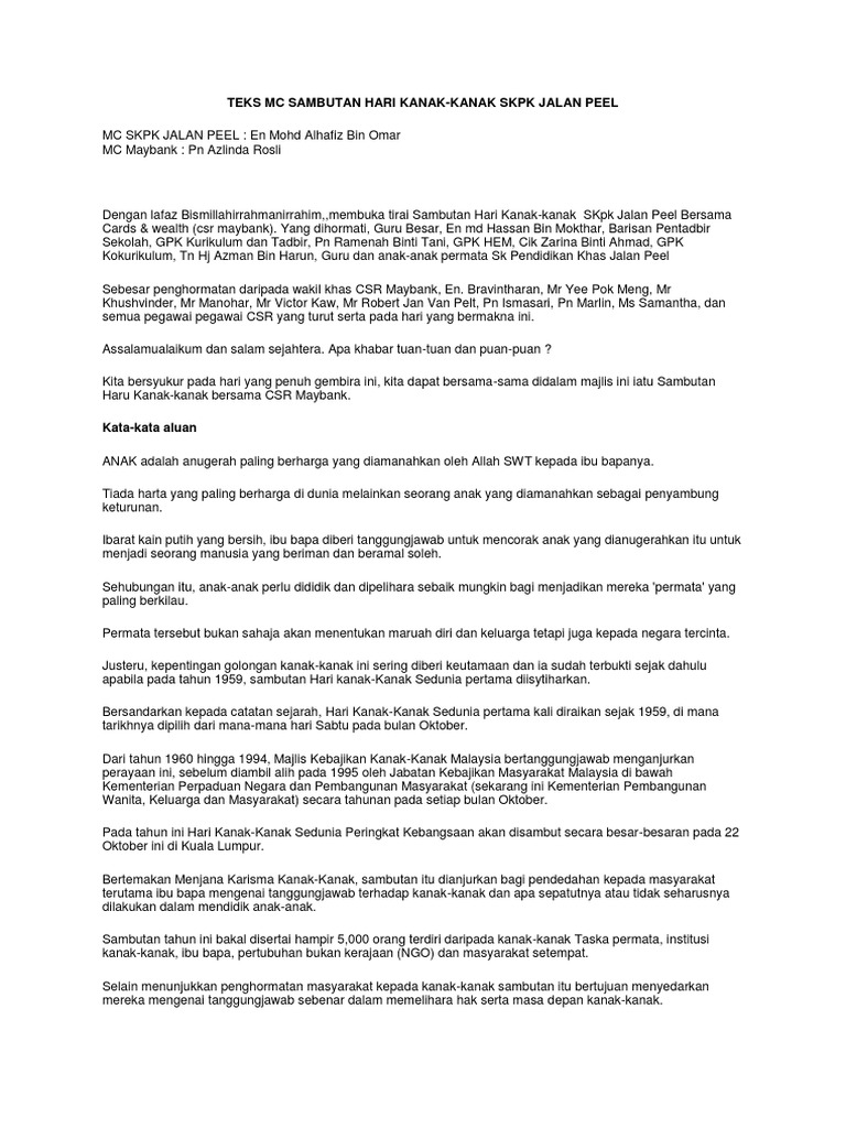 Teks Mc Sambutan Hari Kanak