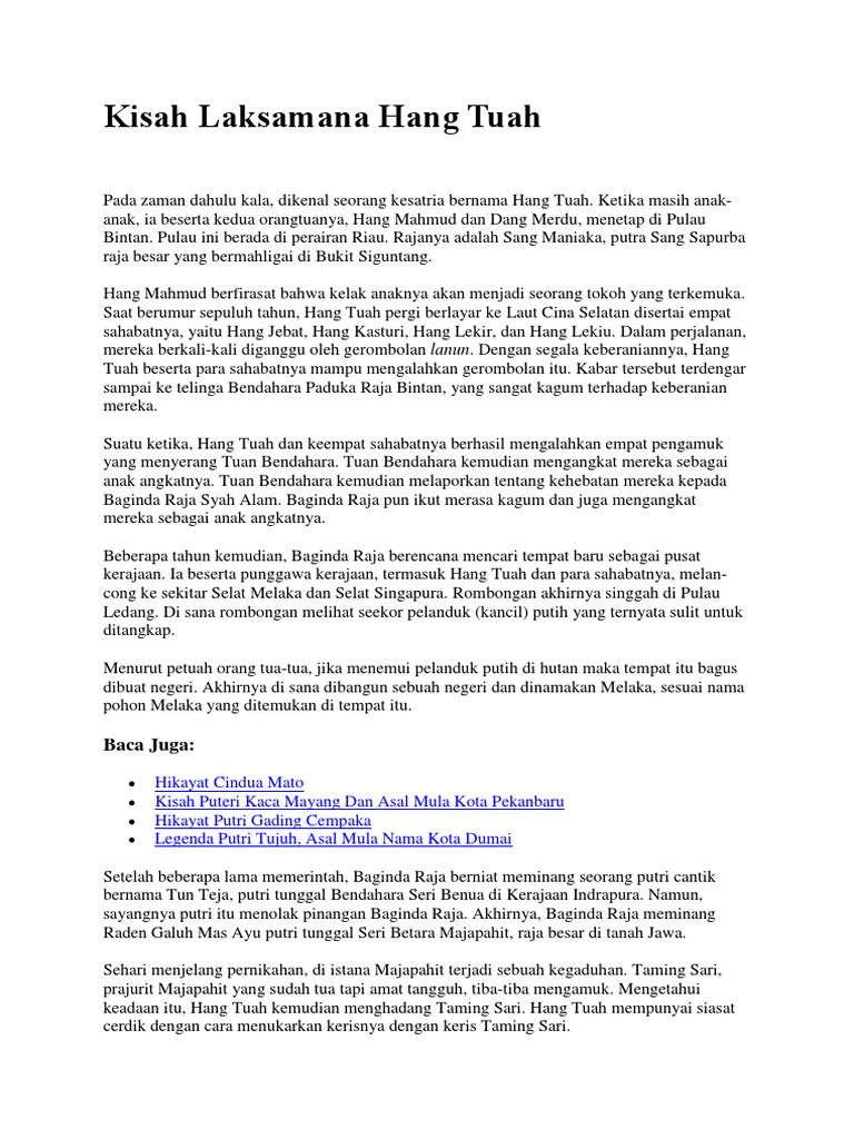 Emelakainfo Hang Tuah Pdf Tourism Melaka