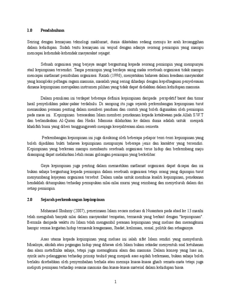 Pdf Pemimpin Dan Kepimpinan Menurut Perspektif Islam Mahani Abdullah Academia Edu