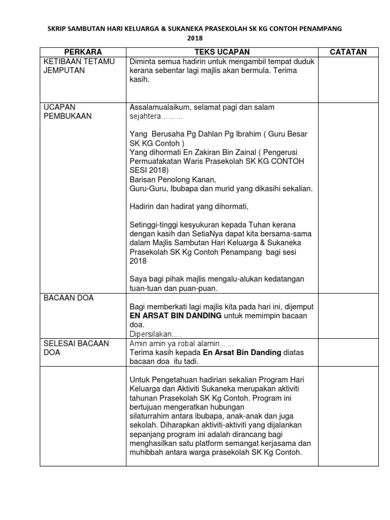 Doc Kertas Kerja Hari Keluarga Dan Sukan Tahunan Jumaadil Talakan Academia Edu
