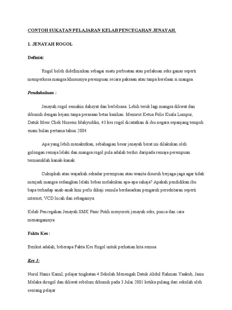 Contoh Sukatan Pelajaran Kelab Pencegahan Jenayah