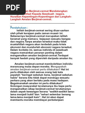 Contoh Karangan Amalan Berjimat Cermat Spm