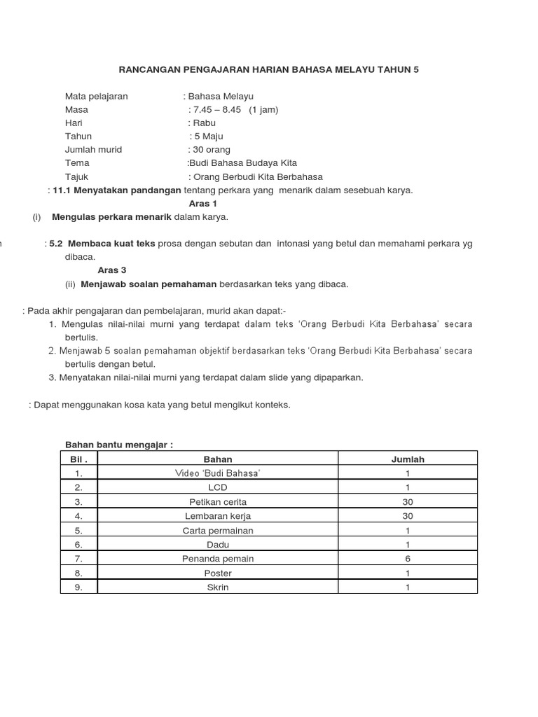 Rancangan Pengajaran Harian Docx Rancangan Pengajaran Harian Rph Tarikh Hari 8 Mac Khamis Tahun 5 Mawar Merah Bilangan Murid 30 Orang Masa 7 30 Pagi Course Hero
