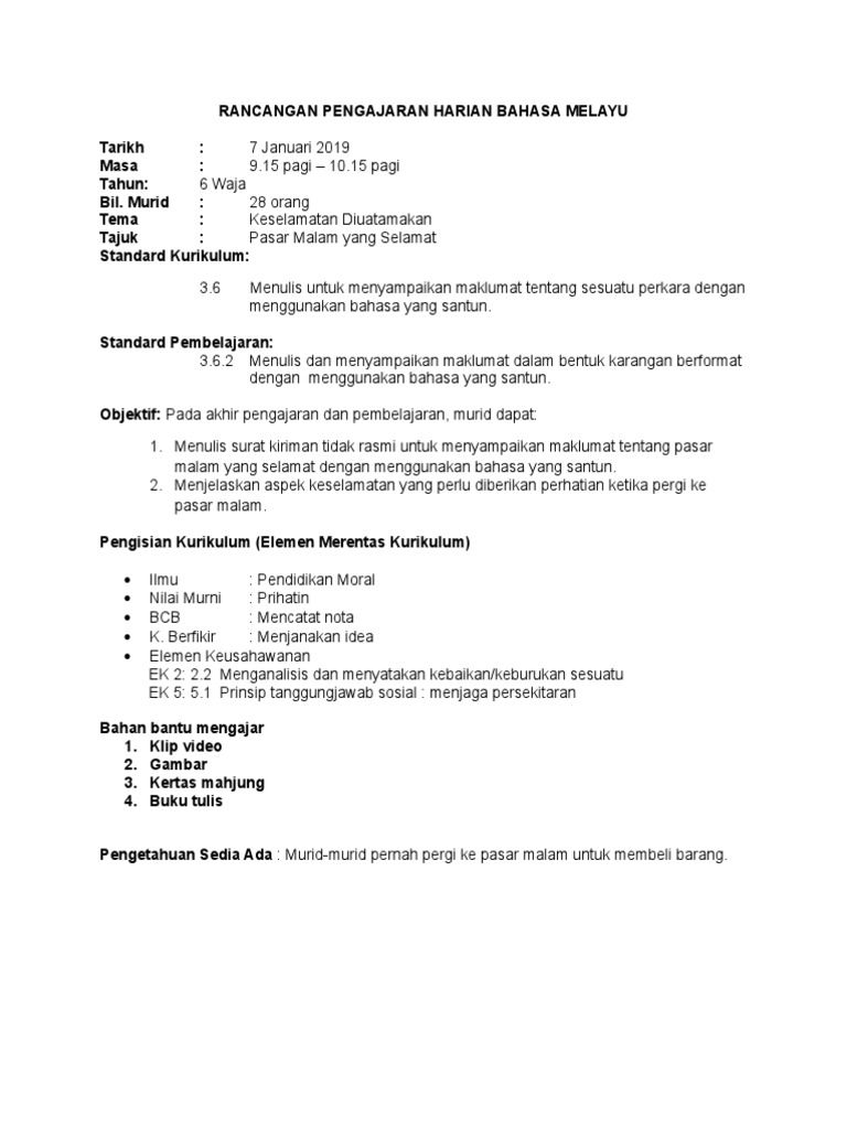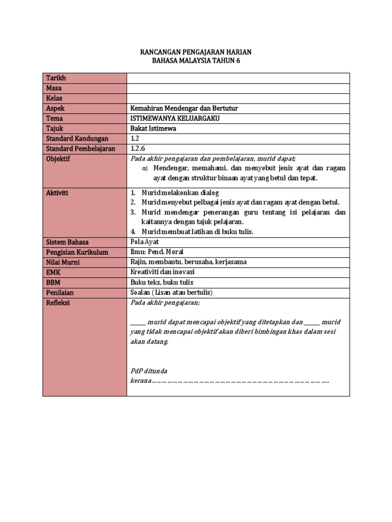 Rancangan Pelajaran Harian Bahasa Melayu Tahun 6 Hijau 2013