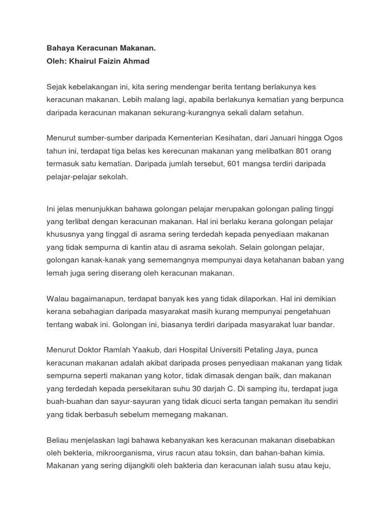 Bahaya Keracunan Makanan Oleh Khairul Faizin Ahmad