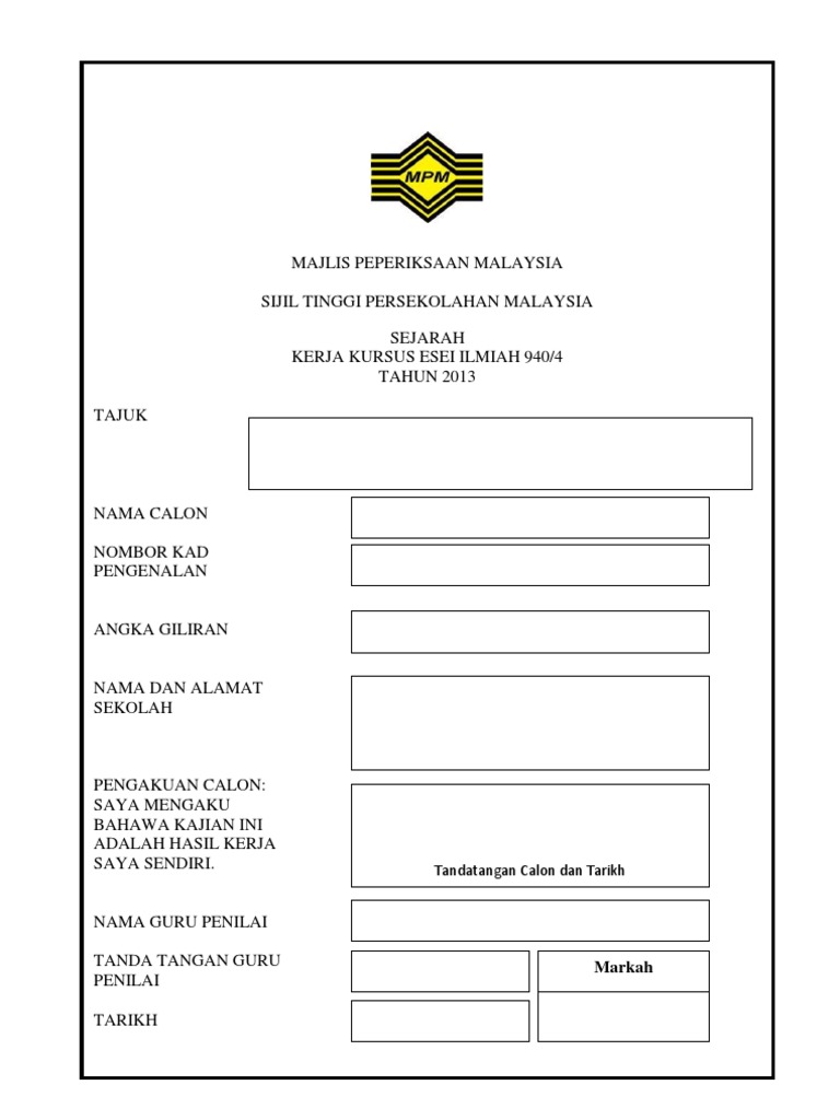 Contoh Kerja Kursus Sejarah Stpm Cute766