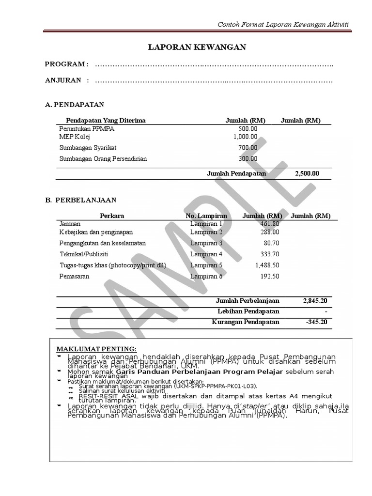 Contoh Laporan Kewangan Bendahari Program