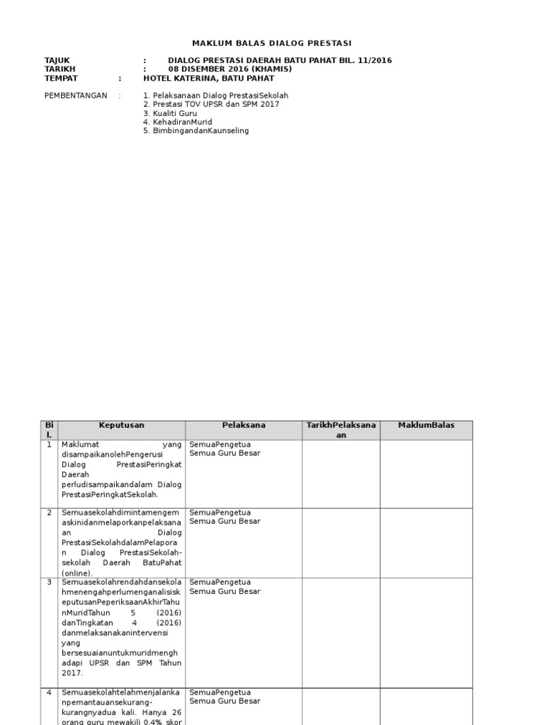 Rumusan Tindakan Dialog Prestasi Bil 1 2016 1 Skpueh Docx