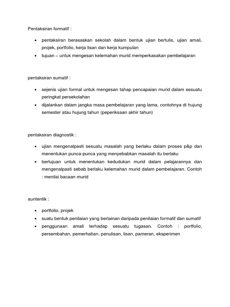 Aslmkum boleh tak bagi contoh penilaian formatif dan sumatif. Secara lebih dekat lagi lihat contoh berikut guru mengajar mata pelajaran pendidikan islam tingkatan 1 bab 1 bahagian tilawah al quran sumber kejayaan. Tujuan utama pentaksiran formatif 1. Pentaksiran sekolah dilaksana dalam bentuk pentaksiran formatif yang dijalankan seiring dengan proses pengajaran dan pembelajaran atau pentaksiran sumatif di akhir unit pembelajaran semester atau tahun.