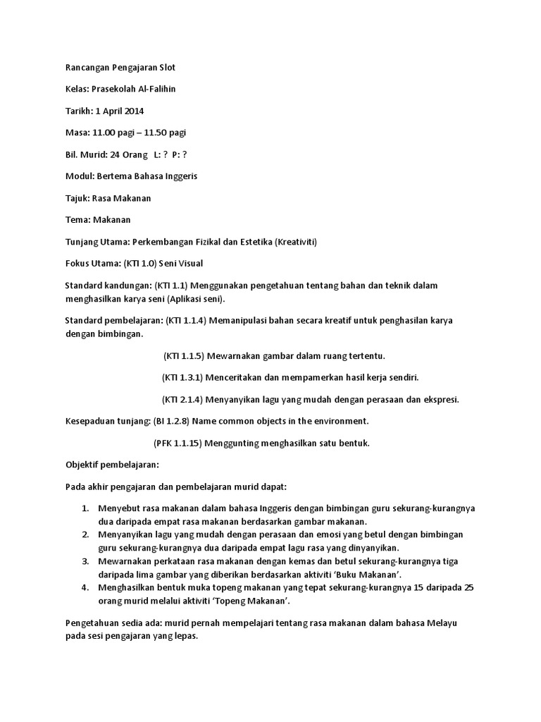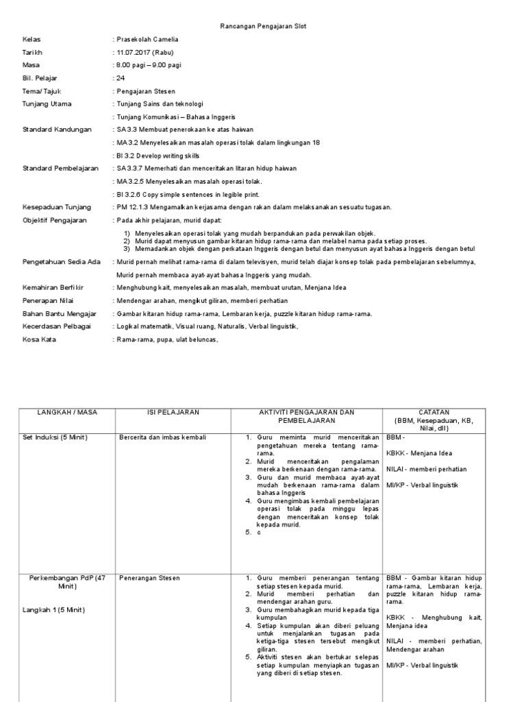 Contoh Rph Bahasa Inggeris Prasekolah 2017