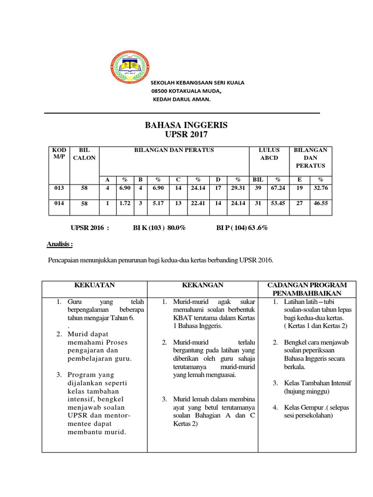 Post Mortem Upsr Bahasa Inggeris Upsr 2018