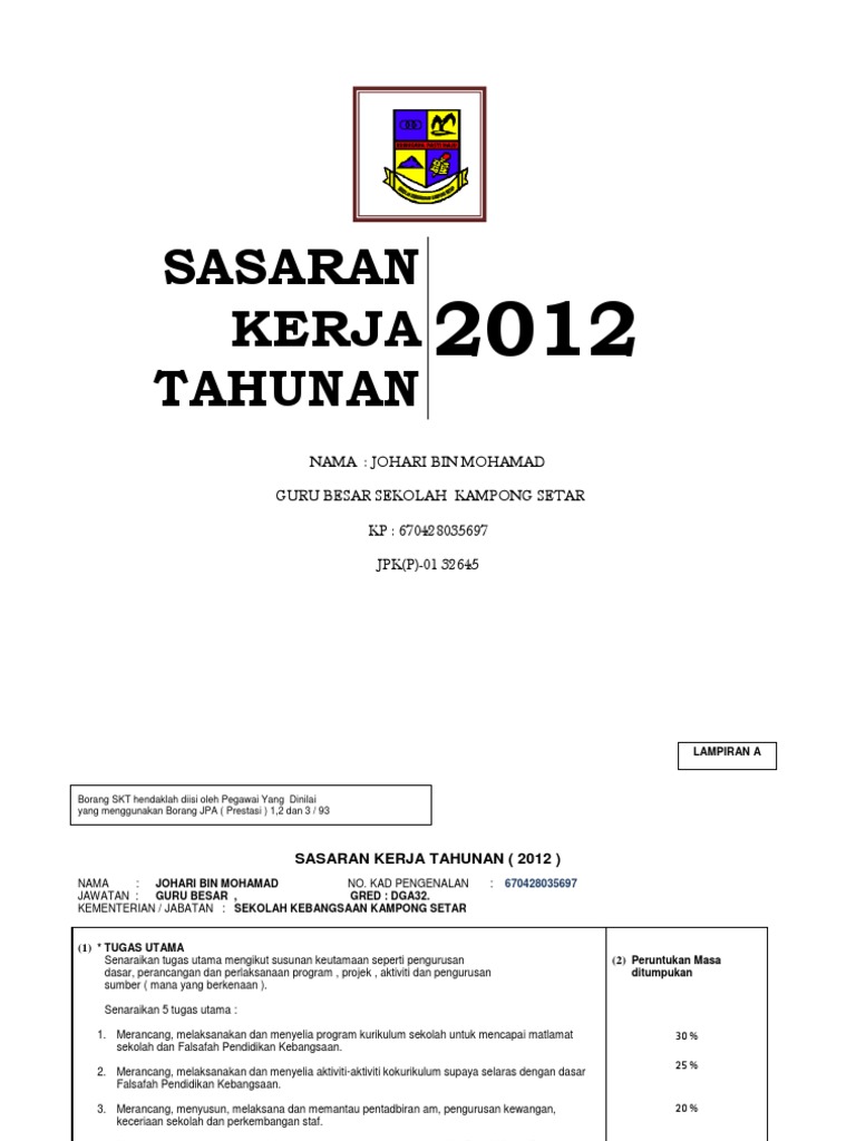 Contoh Sasaran Kerja Tahunan Skt Guru Doc