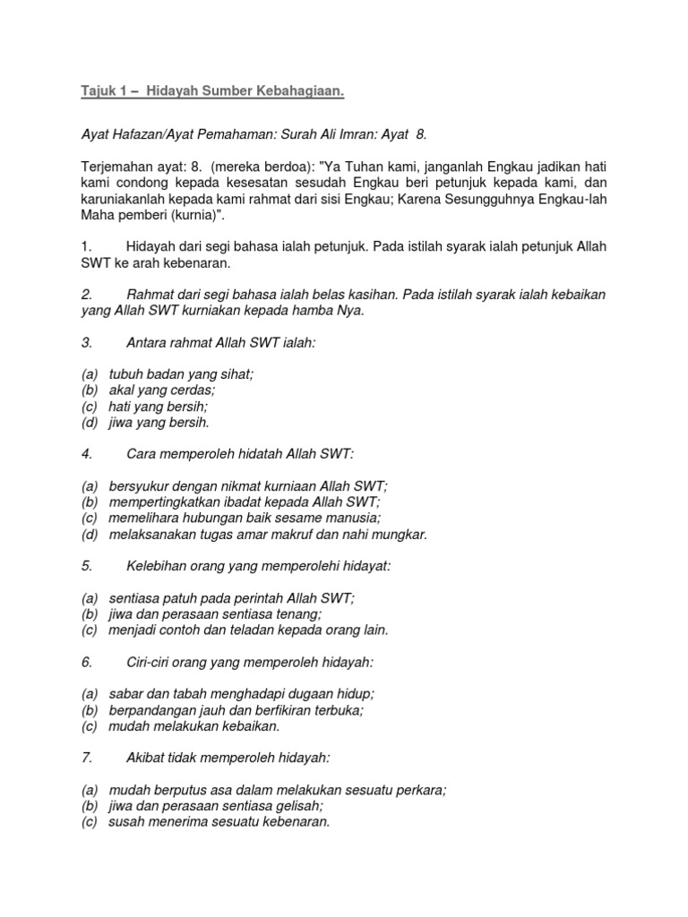 Soalan Dan Jawapan Pendidikan Islam Spm Selangor I