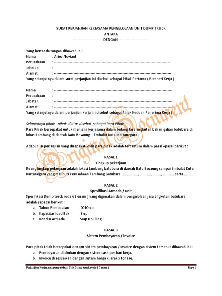 Contoh Surat Perjanjian Kerjasama Travel Agent Dengan Perusahaan Kumpulan Surat Penting