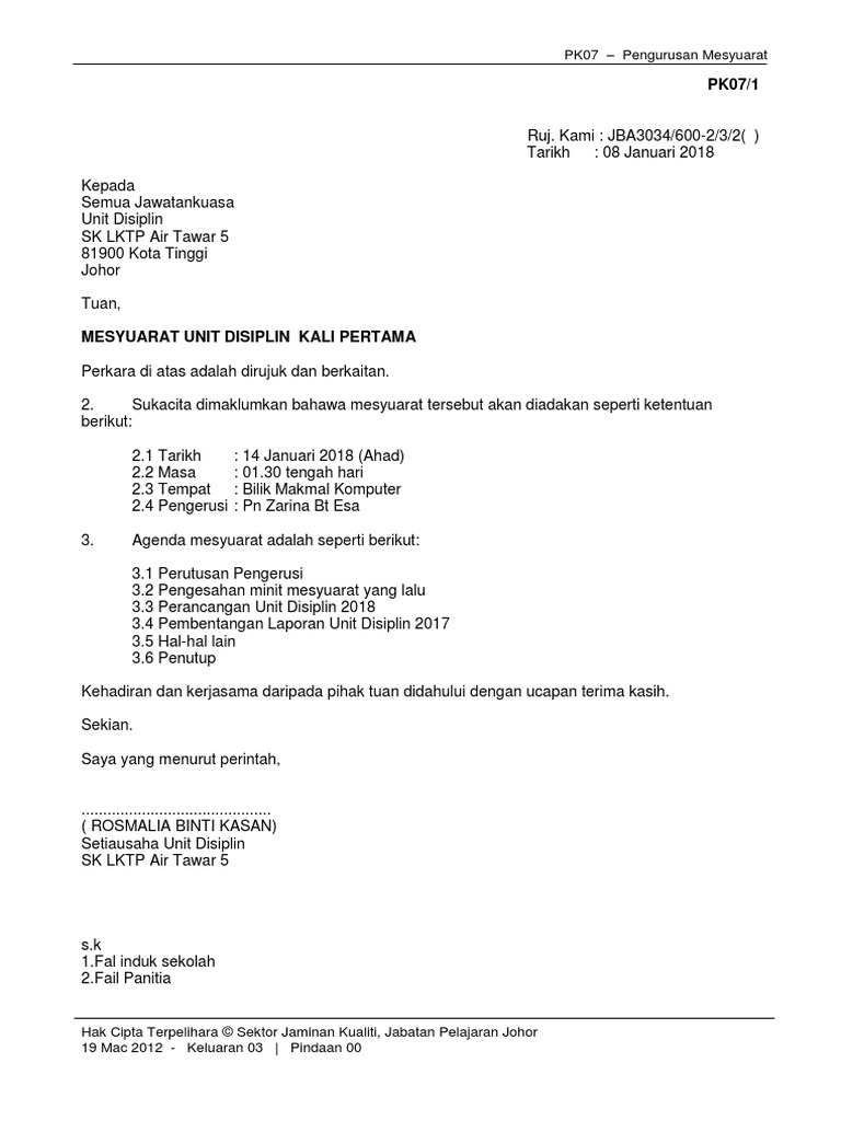 Pk07 Surat Panggilan Mesyuarat Disiplin 2018