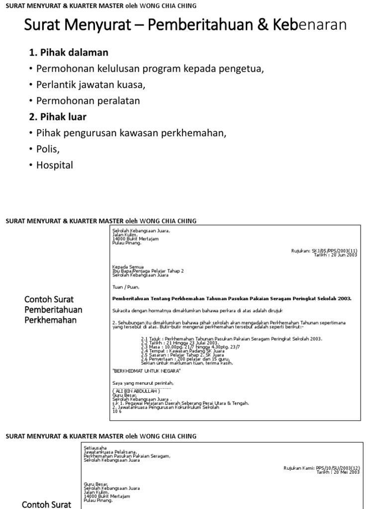 Surat Rasmi Contoh Surat Makluman Kepada Polis