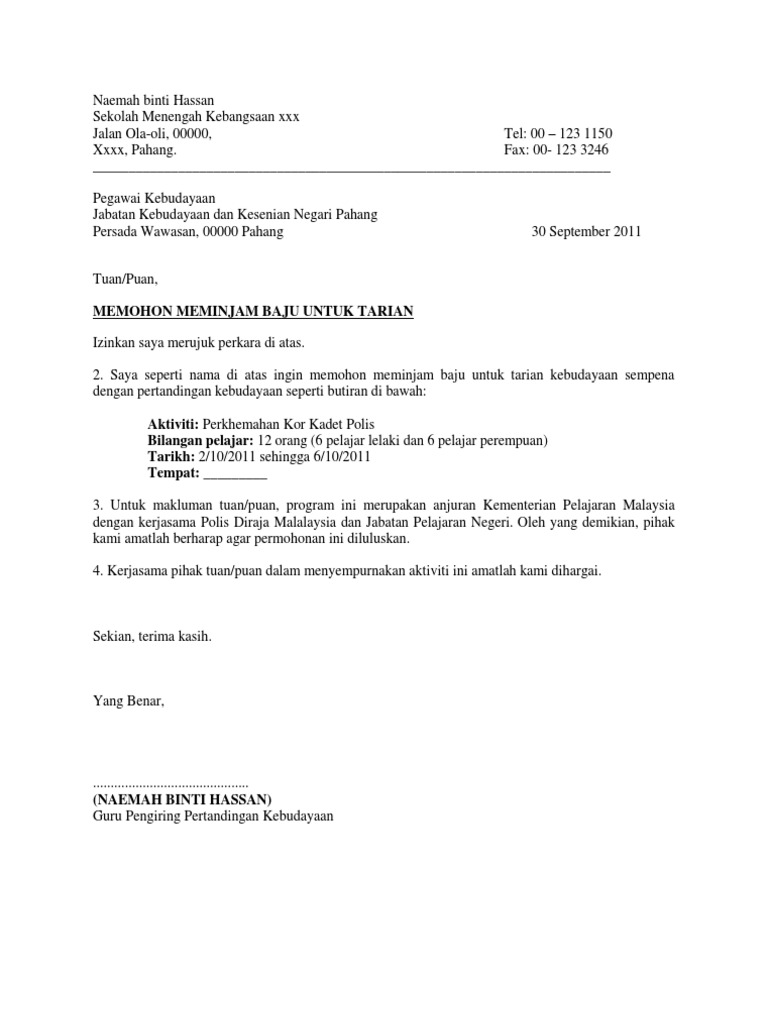 Contoh Surat Memohon Sumbangan Atau Tajaan Pendidik2u